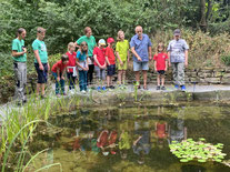 Den Naturgarten am Hardtbach gibt es seit über 35 Jahren. Beim Tag des Offenen NABU-Gartens war neben vielen Gästen auch Gründungsmitglied Günter Keim dabei, der den Garten damals mit angelegt hatte. Mit Gartenbaumeister Peter Schmitt besprach er die Neustrukturierung des Naturgartens. Viel Anklang bei Jung und Alt fand der runderneuerte Teich.