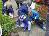 Der jährliche Besuch der NAJU-Kids im Begegnungshaus mit Pflanzaktion hat sich schon zu einer Tradition entwickelt. Der große Garten bot viele Möglichkeiten, sich zu betätigen und ebenso Raum für freies Spiel und Gespräche. Am großen Basteltisch und mit Hilfe von Schnitzmessern, Feilen und Schleifpapier wurden originelle Wichtel erschaffen – der Kreativität waren keine Grenzen gesetzt.